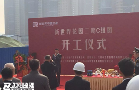新世界地產(chǎn)東北區(qū)域總監(jiān)陳耀豪、常務(wù)副總經(jīng)理吳建芝,副總經(jīng)理唐慶印,高級項目經(jīng)理張巖;我公司董事長王光友,第六事業(yè)部朱海瑞總經(jīng)理,新世界項目監(jiān)理部趙鋼總監(jiān);中國建筑第八工程局天津分公司董事長兼黨委書記趙喜順,中國建筑第八工程局天津分公司副總經(jīng)理鄭永成,中國建筑第八工程局天津分公司東北經(jīng)理部經(jīng)理宋波、江蘇省蘇中建設(shè)東北區(qū)域經(jīng)理肖成斌先生、沈陽國興建筑工程有限公司董事長付洪雨先生、各單位其他領(lǐng)導(dǎo)及新世界花園項目監(jiān)理部全體成員參加開工儀式。