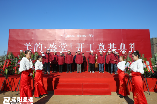 2017年11月23日上午9:58分,沈陽(yáng)美的·盛堂(汪河路項(xiàng)目)在工程現(xiàn)場(chǎng)舉行盛大奠基儀式。參加奠基儀式的嘉賓有美的地產(chǎn)總經(jīng)理范雪梅女士、美的地產(chǎn)項(xiàng)目總監(jiān)呂偉先生、美的地產(chǎn)工程部經(jīng)理孫旭東先生,沈陽(yáng)監(jiān)理副董事長(zhǎng)王志杰先生、沈陽(yáng)監(jiān)理醫(yī)療事業(yè)部經(jīng)理朱海瑞先生、副經(jīng)理趙金先生、沈陽(yáng)監(jiān)理駐美的·盛堂項(xiàng)目執(zhí)行總監(jiān)白舸先生,施工單位中天建設(shè)相關(guān)領(lǐng)導(dǎo)。