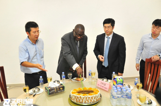 右1管理組長張禹良、右2技術(shù)組長幸振江、右3經(jīng)商處參贊孫亮、右4合作局駐場代表鄧宏