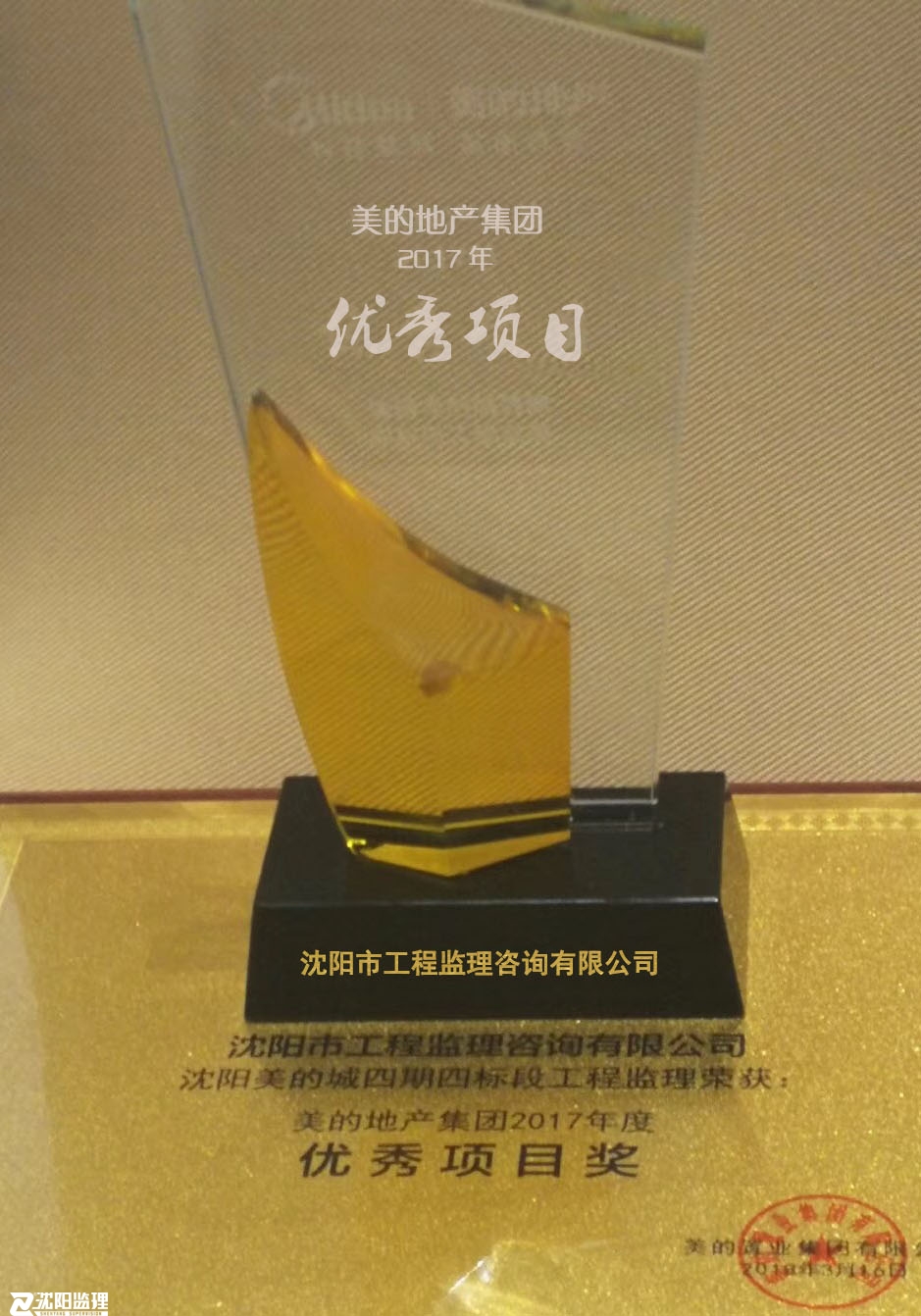 3月16日,由美的地產(chǎn)集團舉辦的“守心拓路 敦行致遠”——2018年供應商年會暨2017年度優(yōu)秀供應商表彰大會在佛山高明美的鷺湖國際會議中心召開。沈陽監(jiān)理朱海瑞副總裁受邀赴廣州佛山參加會議并代表領(lǐng)獎。沈陽監(jiān)理作為美的地產(chǎn)集團的多年的合作伙伴,接受了美的地產(chǎn)集團對在監(jiān)項目的表彰,榮獲了"2017年優(yōu)秀項目獎"。