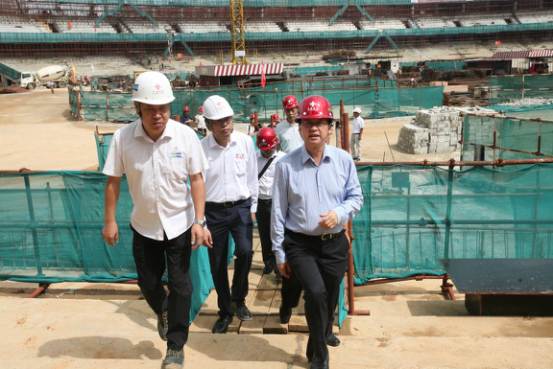 2018年6月29日上午10時(shí),合作局西非處處長(zhǎng)張明武、合作局中非處吳帆等一行領(lǐng)導(dǎo)蒞臨援科特迪瓦阿比讓體育場(chǎng)項(xiàng)目。在合作局駐場(chǎng)代表、現(xiàn)場(chǎng)管理組和施工技術(shù)組主要管理人員的陪同下視察了施工現(xiàn)場(chǎng),期間管理組組長(zhǎng)張禹良對(duì)目前施工進(jìn)度情況進(jìn)行現(xiàn)場(chǎng)介紹。