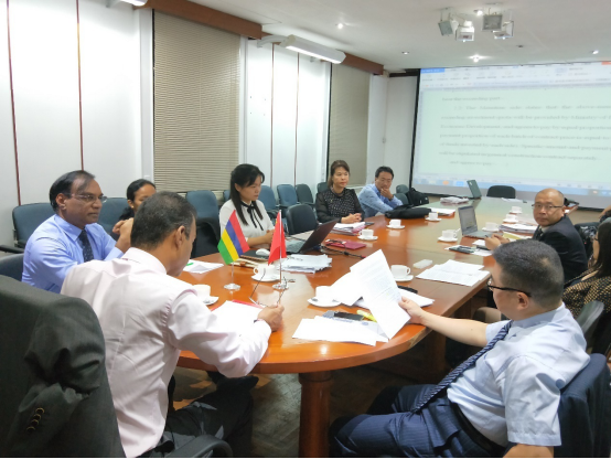 2018月6月29日下午于7月1日到中國援助毛里求斯綜合體育中心項(xiàng)目現(xiàn)場,了解現(xiàn)場施工情況,與施工總承包單位中建集團(tuán)座談。