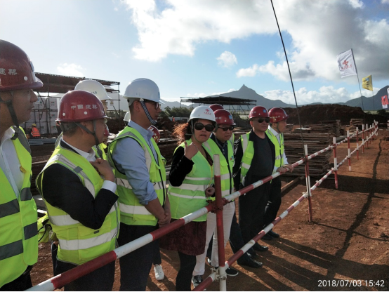 7月3日上午合作局俞子榮書記、東南非處副處長許璐和主任李佳博組成的工作組一行三人抵達(dá)毛里求斯。北京建院張子軍院長、項(xiàng)目經(jīng)理李文華、翻譯韓娟和沈陽監(jiān)理高福春副總裁一行四人及現(xiàn)場項(xiàng)目管理組人員進(jìn)行了迎接。