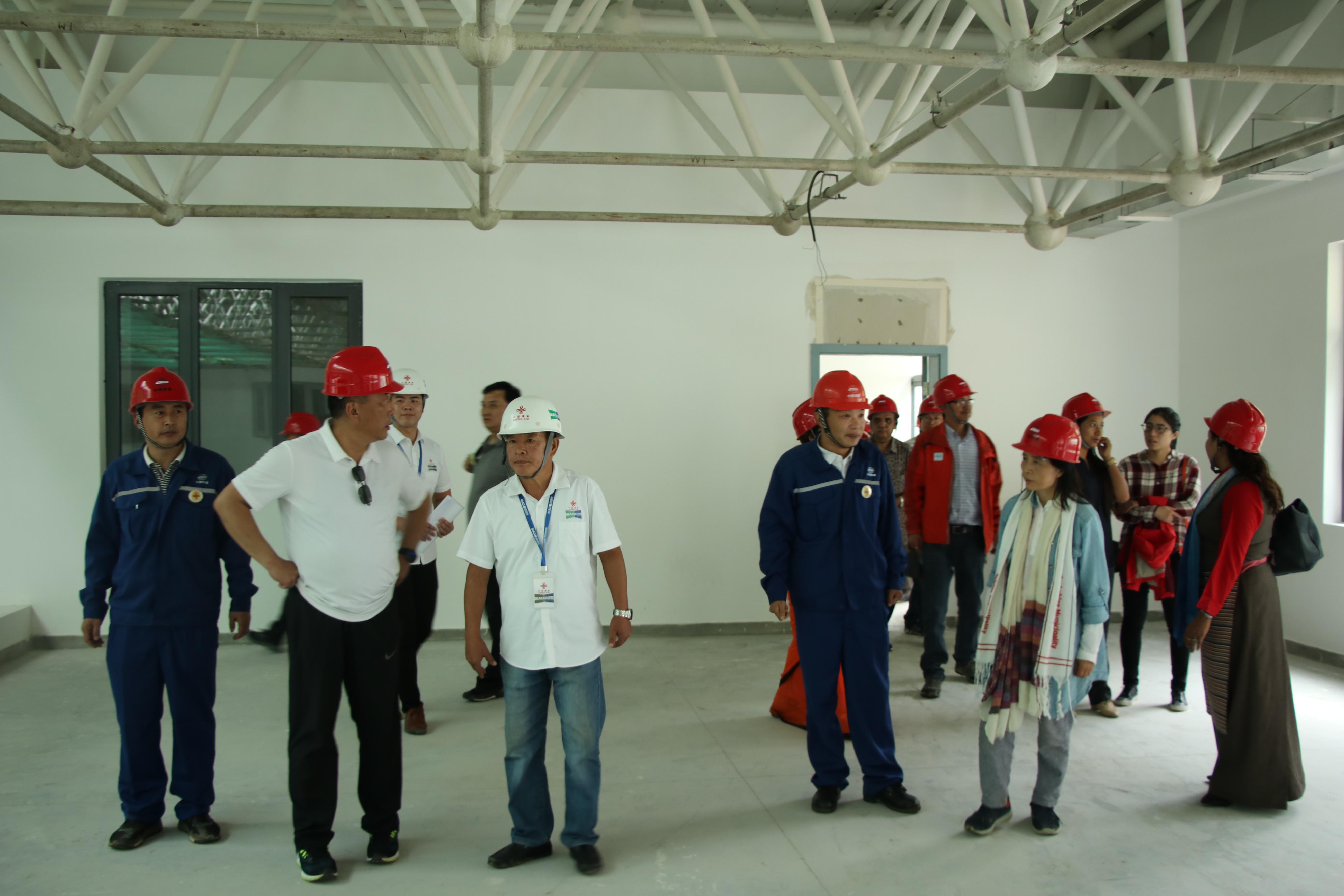 現(xiàn)場管理組與施工技術(shù)組相關(guān)人員陪同中尼雙方代表視察