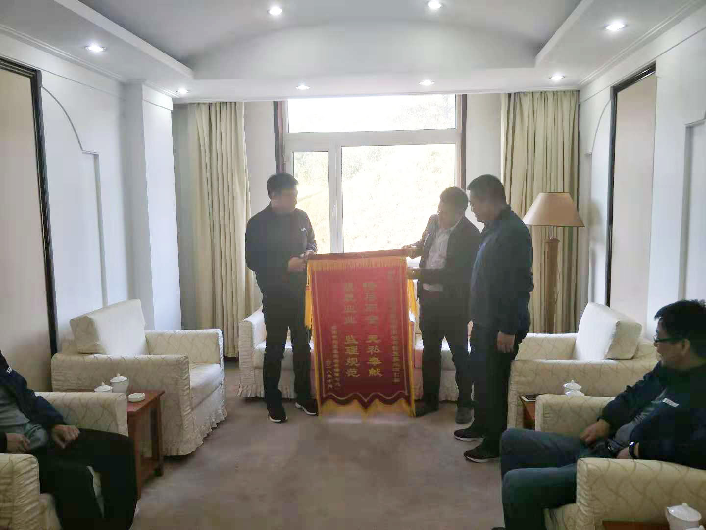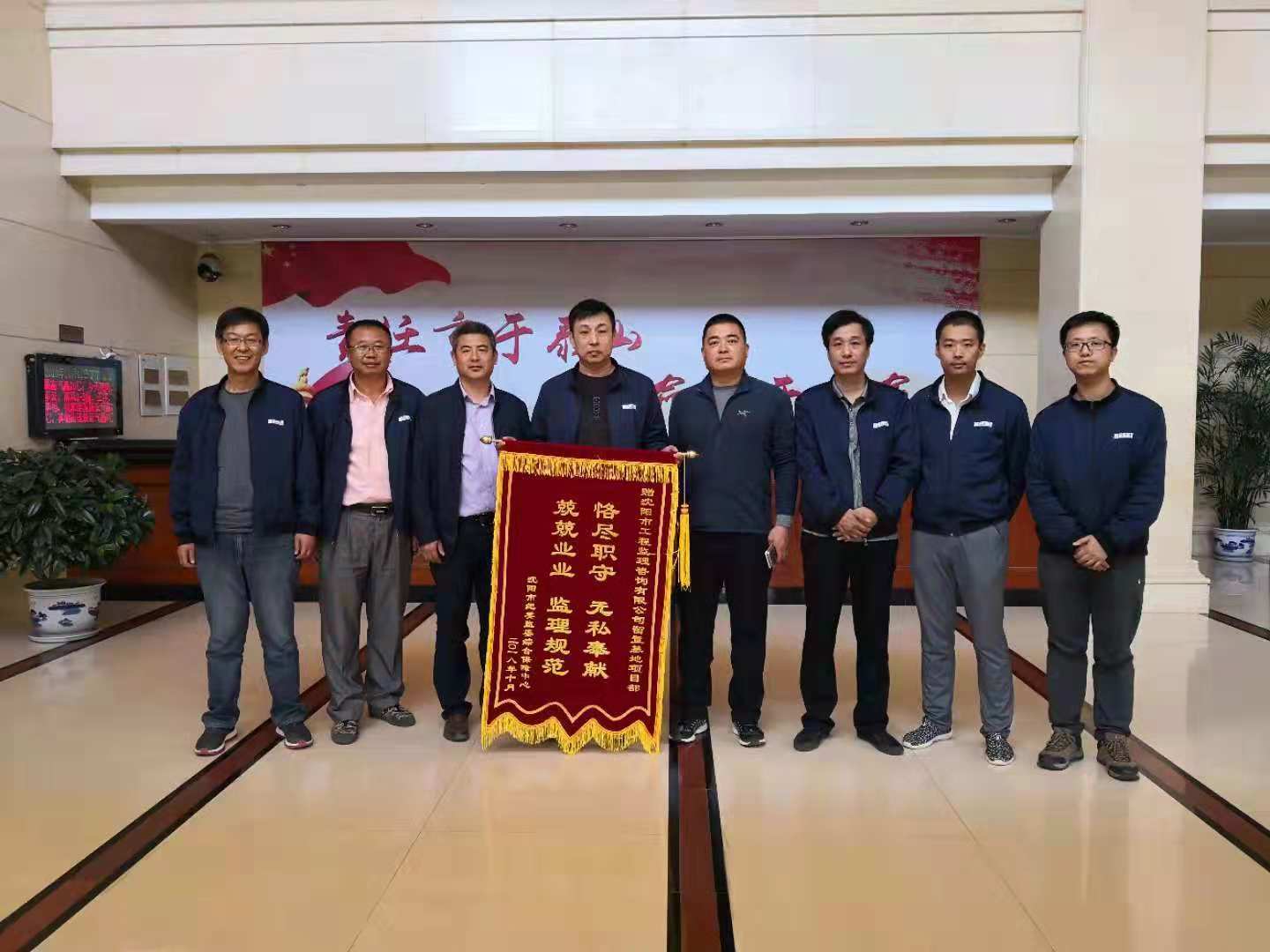 2018年10月13日下午14:00時(shí),沈陽(yáng)市工程監(jiān)理咨詢有限公司副總裁張會(huì)良、第二事業(yè)部經(jīng)理劉曉偉、副經(jīng)理王吉鋒及項(xiàng)目監(jiān)理部總代丁兆嵐、土建工程師肖龍、水暖工程師史守發(fā)參加沈陽(yáng)市紀(jì)委留置基地改造工程項(xiàng)目錦旗頒發(fā)儀式。