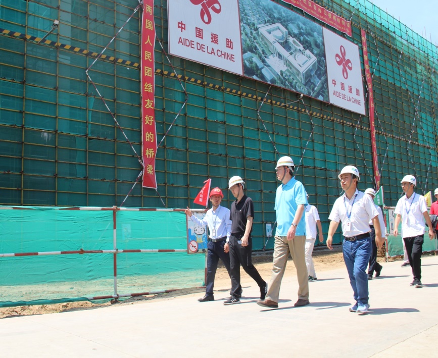 外交部領(lǐng)事司副司長(zhǎng)陳雄風(fēng)一行蒞臨援剛果(布)新議會(huì)大廈項(xiàng)目現(xiàn)場(chǎng)視察,駐剛果(布)使館辦公室主任薛磊陪同。