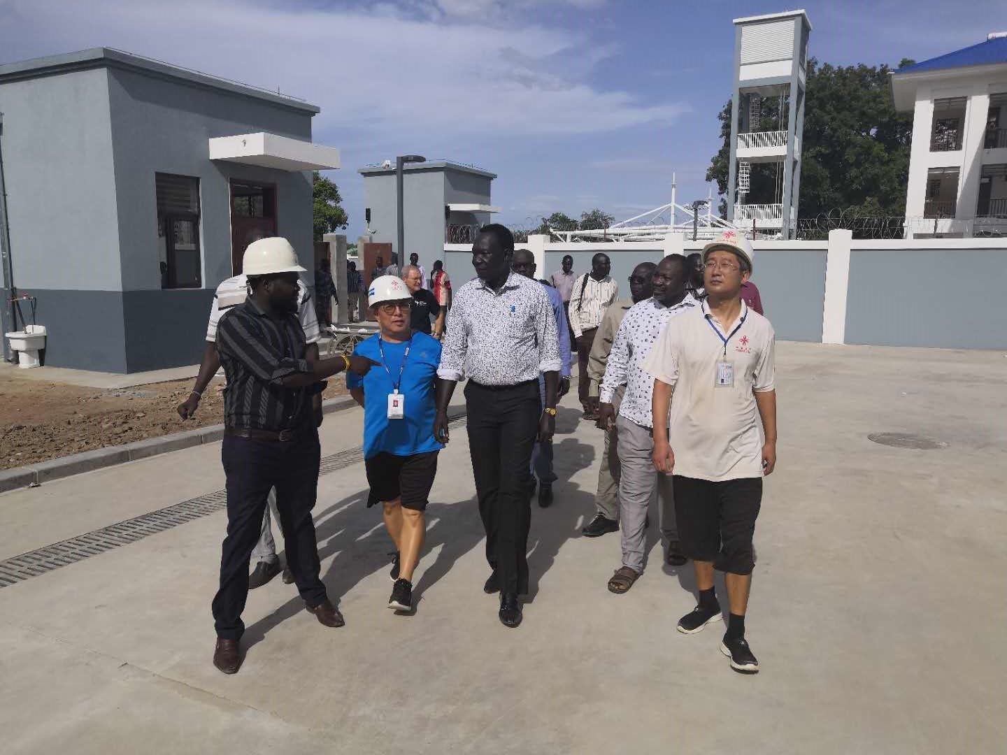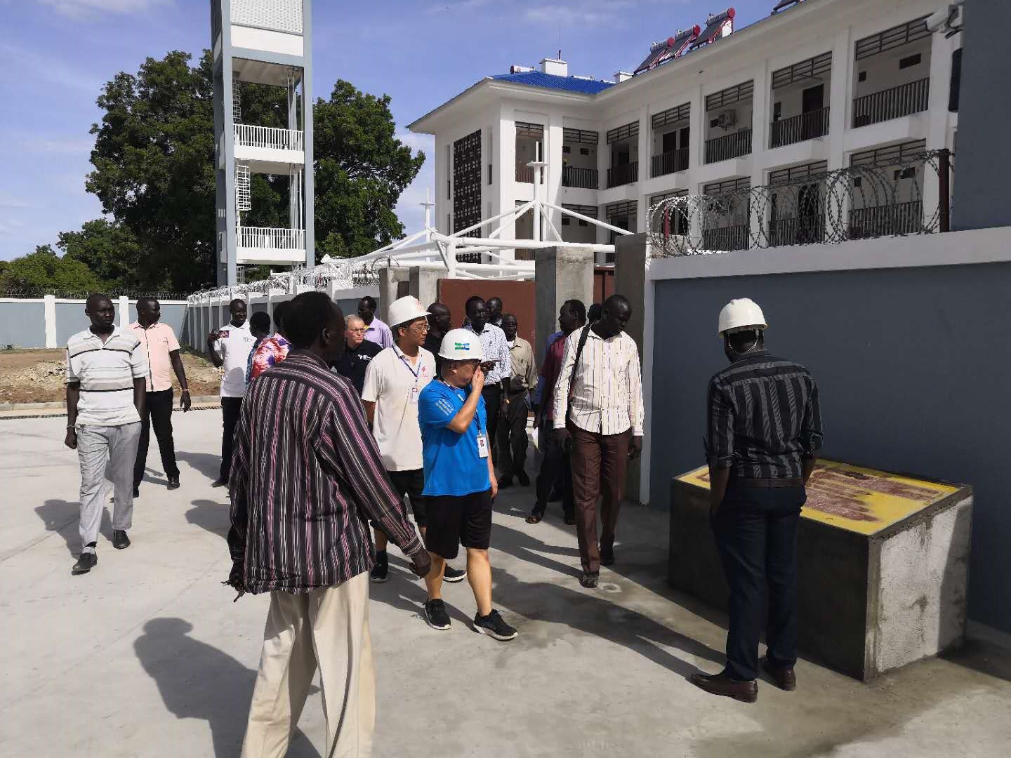 5月22日上午,南蘇丹副總統(tǒng)瓦尼繼2018年2月16日再次來(lái)到中國(guó)援南蘇丹朱巴教學(xué)醫(yī)院改擴(kuò)建項(xiàng)目施工現(xiàn)場(chǎng)參觀視察。中國(guó)駐南蘇丹大使華寧、使館經(jīng)商參贊蔡森明,南蘇丹衛(wèi)生部部長(zhǎng)庫(kù)克等陪同參加上述活動(dòng)?,F(xiàn)場(chǎng)項(xiàng)目組施工管理人員、中國(guó)援南醫(yī)療隊(duì)以及醫(yī)院醫(yī)護(hù)人員夾道歡迎。當(dāng)?shù)囟嗉抑髁髅襟w隨行采訪報(bào)道。