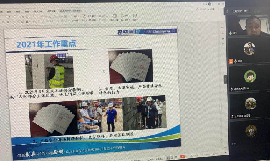 回顧2020年,沈陽監(jiān)理在疫情下攻堅克難,以堅持穩(wěn)中求變的工作總基調(diào),持之以恒抓重點補短板強弱項,統(tǒng)籌謀劃各項目,提高效能項目,穩(wěn)固發(fā)展搭建精細管理框架傳遞體系。每年一度的述職匯報是全面了解、核實和考評各項目、職能部門表現(xiàn)情況,是高質(zhì)量考核促進高素質(zhì)團隊建設(shè)和事業(yè)發(fā)展的一項重要活動。