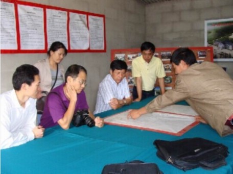 監(jiān)理組長(zhǎng)王傳貴(從左至右)一行在現(xiàn)場(chǎng)了解工程進(jìn)展情況
