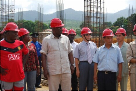 2009年11月28日,塞拉利昂總統(tǒng)科羅馬在塞衛(wèi)生部副部長科羅馬、外交部副總司長巴希爾、駐塞拉利昂大使邱紹芳、使館經(jīng)商處參贊趙中秋、我公司監(jiān)理組長田建華的陪同下視察我公司監(jiān)理的援塞拉利昂醫(yī)院項目。