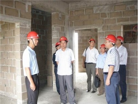 中檢驗(yàn)收組在現(xiàn)場(chǎng)視察(右三為監(jiān)理組長(zhǎng)王傳貴)