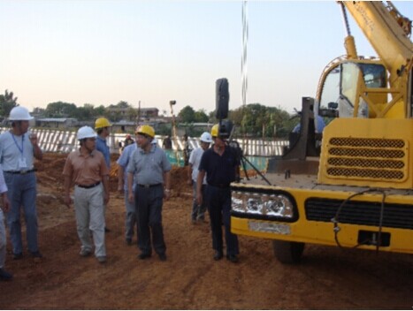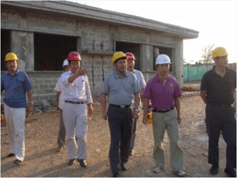 龐參贊一行在監(jiān)理小組陪同下了解現(xiàn)場情況(右二為監(jiān)理工程師付東昇)