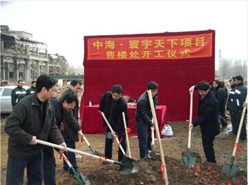 2010年3月22日,由我公司監(jiān)理、中海地產(chǎn)開(kāi)發(fā)的寰宇·天下項(xiàng)目開(kāi)工奠基儀式在該項(xiàng)目工地上隆重舉行。中海地產(chǎn)方項(xiàng)目經(jīng)理鮑總、工程部經(jīng)理董總、北方區(qū)助理總經(jīng)理王總,我公司法人代表王志杰、項(xiàng)目總監(jiān)馮郁、市場(chǎng)營(yíng)銷部部長(zhǎng)王磊及施工單位南通二建均到場(chǎng)祝賀。