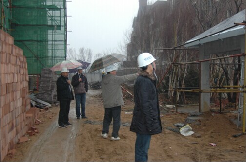 林總帶領(lǐng)聯(lián)檢組成員冒雨檢查華潤·橡樹灣項目