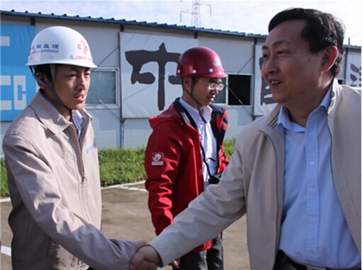 王和民副部長(右一)與施工監(jiān)理組組長費堅(左一)合影