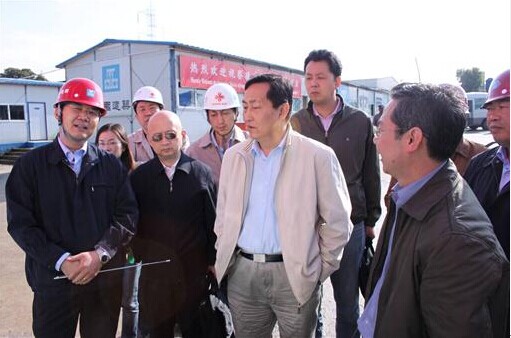 王和民副部長(右一)現(xiàn)場檢查,監(jiān)理組組長費堅(右二)、