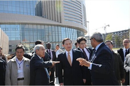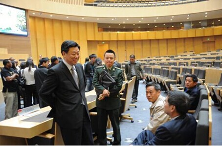 2012年1月7日上午10時(shí),外交部部長(zhǎng)助理兼禮賓司司長(zhǎng)張坤生、賈慶林主席辦公室主任劉佳義、中央警衛(wèi)局副局長(zhǎng)齊東然一行12人組成的賈慶林主席先遣組蒞臨援非盟會(huì)議中心項(xiàng)目視察、指導(dǎo)。