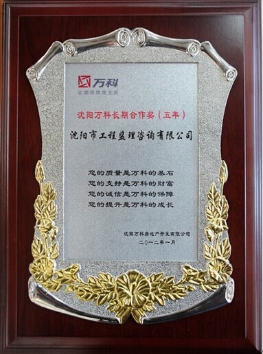 沈陽監(jiān)理與萬科成功攜手五年,喜獲“沈陽萬科長期合作獎(jiǎng)”。
