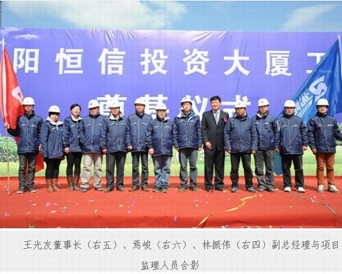 2012年3月30日上午10:18分整,由我司監(jiān)理的沈陽恒信投資大廈項目開工奠基儀式正式開始。公司董事長王光友、副總經(jīng)理焉峻、林振偉一行領導應邀參加了奠基儀式。王光友董事長親自為項目剪彩并培土奠基。
