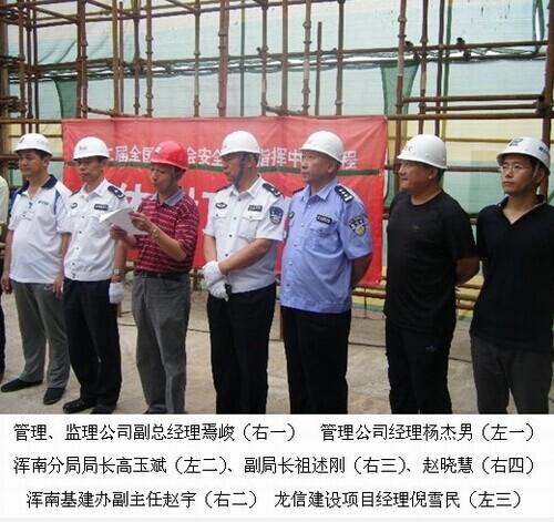 2012年8月31日,我公司監(jiān)理的第十二屆全國(guó)運(yùn)動(dòng)會(huì)安全保衛(wèi)指揮中心項(xiàng)目主體工程提前順利封頂。渾南新區(qū)公安局高玉斌局長(zhǎng)、王效偉政委、王世輝、祖述剛副局長(zhǎng)、渾南基建辦閻德明主任、趙宇副主任、我公司焉峻副總經(jīng)理、項(xiàng)目經(jīng)理?xiàng)罱苣?、總監(jiān)袁旭、龍信建設(shè)集團(tuán)經(jīng)理倪雪民等領(lǐng)導(dǎo)出席了慶典儀式。