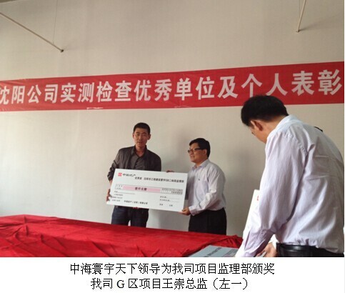 2012年9月26日下午,在中海寰宇天下會議廳隆重舉行了中海地產(chǎn)沈陽公司實測檢查表彰大會,對在實測檢查中取得優(yōu)異成績的參建單位予以嘉獎。