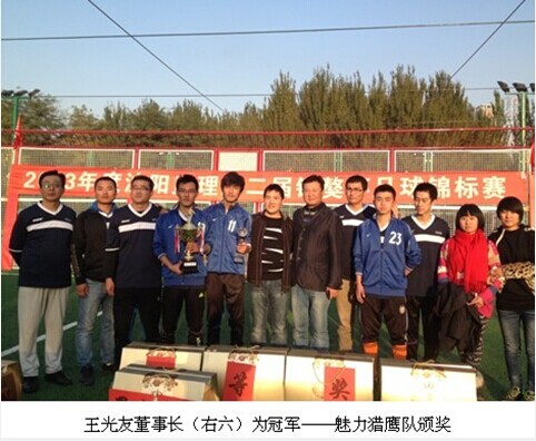 王光友董事長(zhǎng)、王志杰副董事長(zhǎng)、金星總經(jīng)理、焉峻、林振偉副總經(jīng)理與廣大員工全程觀看了半決賽和決賽,親自為運(yùn)動(dòng)員加油助威。本次錦標(biāo)賽精彩紛呈,備受矚目的冠亞軍決賽更是驚心動(dòng)魄,隊(duì)員們嫻熟的球技和緊張的比賽場(chǎng)面引來(lái)觀眾一陣陣熱烈的掌聲。魅力獵鷹隊(duì)最終以8:7的比分險(xiǎn)勝房政聯(lián)隊(duì),勇奪2013年度沈陽(yáng)監(jiān)理第二屆男子足球錦標(biāo)賽“鐵獒杯”。