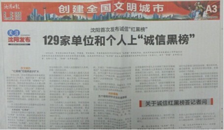 2014年8月4日,市精神文明辦聯(lián)合市法院、市建委、市環(huán)保局、市食藥監(jiān)局召開沈陽市誠信“紅黑榜”新聞發(fā)布會(huì),就沈陽市誠信體系制度建設(shè)工作即誠信企業(yè)和失信企業(yè)的相關(guān)情況向社會(huì)各界進(jìn)行通報(bào)。這是沈陽市首次以“紅黑榜”的方式集中通報(bào)誠信企業(yè)(自然人),其中“黑榜”單位有119家、自然人17名,“紅榜”名單65家。我公司榮登誠信企業(yè)紅榜名單。
