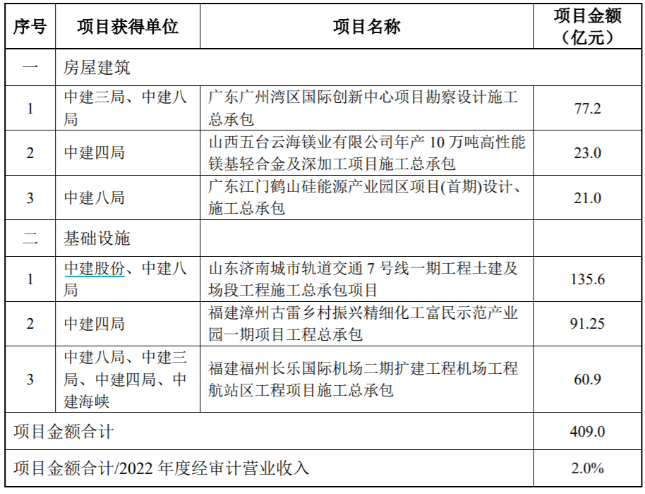 6月28日晚間,中國建筑公告稱,近期公司獲得廣東廣州灣區(qū)國際創(chuàng)新中心項目勘察設計施工總承包等六個重大項目,項目金額合計409億元,占2022年度經(jīng)審計營業(yè)收入2%。