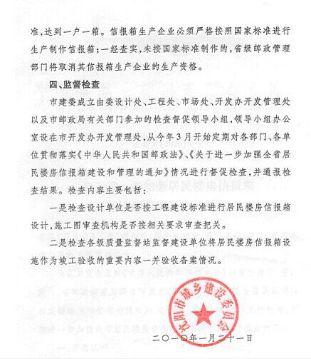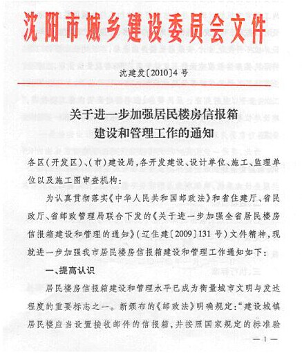 關(guān)于加強(qiáng)居民樓信報(bào)箱建設(shè)和管理工作的通知