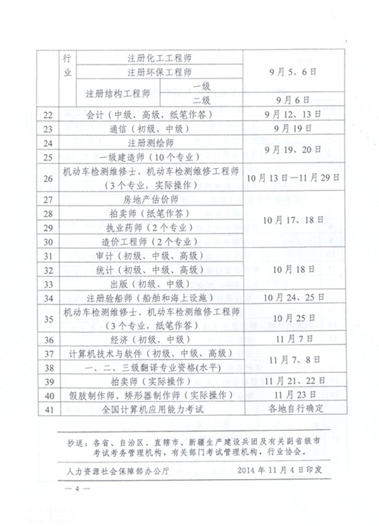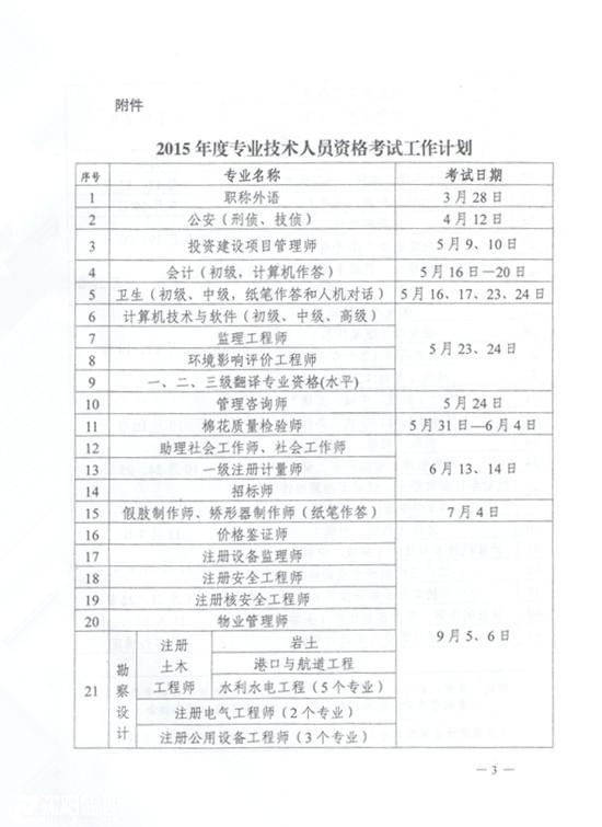 轉(zhuǎn)發(fā)人力資源社會(huì)保障部辦公廳關(guān)于2015年度專業(yè)技術(shù)人員資格考試計(jì)劃及有關(guān)問題的通知