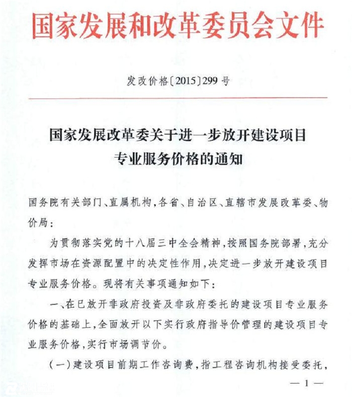 國家發(fā)展改革委關(guān)于進(jìn)一步放開建設(shè)項目專業(yè)服務(wù)價格的通知