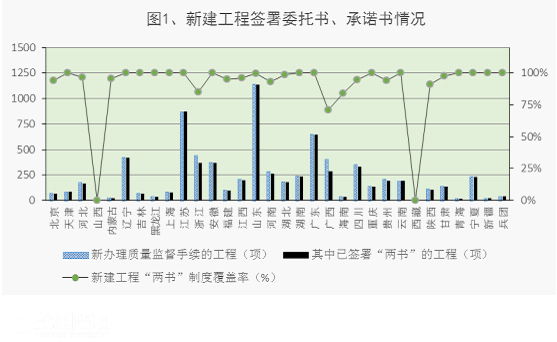2015年2月,全國(guó)新辦理質(zhì)量監(jiān)督手續(xù)的工程共7302項(xiàng),其中已簽署法定代表人授權(quán)書(shū)、工程質(zhì)量終身責(zé)任承諾書(shū)的工程有7023項(xiàng),覆蓋率達(dá)96.18%,較1月份上漲約8個(gè)百分點(diǎn),江蘇、廣東、遼寧等14個(gè)省、自治區(qū)、直轄市和新疆生產(chǎn)建設(shè)兵團(tuán)覆蓋率達(dá)100%。此外,全國(guó)共有15370項(xiàng)已經(jīng)開(kāi)工、正在建設(shè)的工程補(bǔ)簽了法定代表人授權(quán)書(shū)和工程質(zhì)量終身責(zé)任承諾書(shū)。