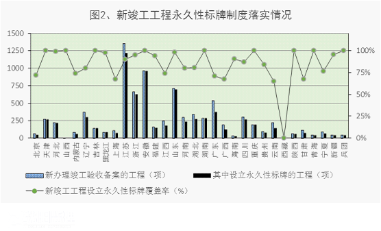全國(guó)2月份新辦理竣工驗(yàn)收備案的工程8291項(xiàng),其中有7353項(xiàng)工程設(shè)立永久性標(biāo)牌,覆蓋率達(dá)88.69%,較1月份下降約5個(gè)百分點(diǎn),安徽、湖南、天津等8個(gè)省、直轄市和新疆生產(chǎn)建設(shè)兵團(tuán)覆蓋率達(dá)到100%,有5938項(xiàng)工程建立質(zhì)量信用檔案,覆蓋率達(dá)71.62%,較1月份下降約6個(gè)百分點(diǎn),安徽、湖南、天津等7個(gè)省、直轄市覆蓋率達(dá)100%。