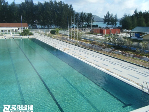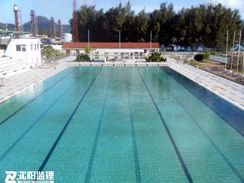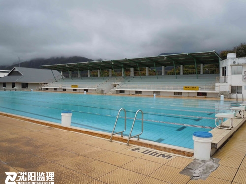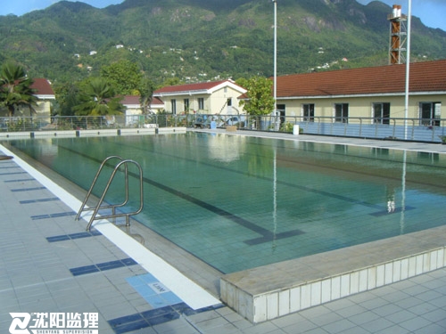 援塞舌爾國家游泳池項目占地110m×84m范圍內(nèi),有比賽、學(xué)習(xí)、兒童三個露天泳池、更衣房、水循環(huán)機房、綜合房、帶大雨棚的看臺和傳達室,總建筑面積1530.51平方米。對建筑物外表面維修見新,將傳達室布置改為觀眾和運動員兩個接待區(qū),利用看臺下原有房間改造為VIP室。為賽事和安全考慮,新增部分道路實現(xiàn)人員分流。重建周界圍墻和三個泳池周邊增加安全護欄。新建電子記分牌框架結(jié)構(gòu)。
