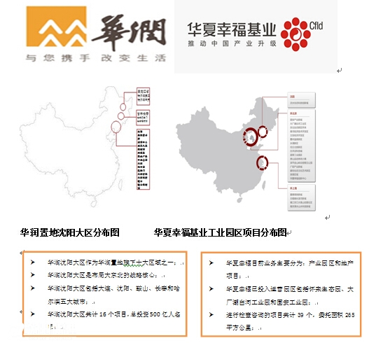 我司現(xiàn)與華潤沈陽大區(qū)(區(qū)域)和華夏幸?;鶚I(yè)集團(tuán)(產(chǎn)業(yè)園區(qū))兩家公司進(jìn)行咨詢合作;
