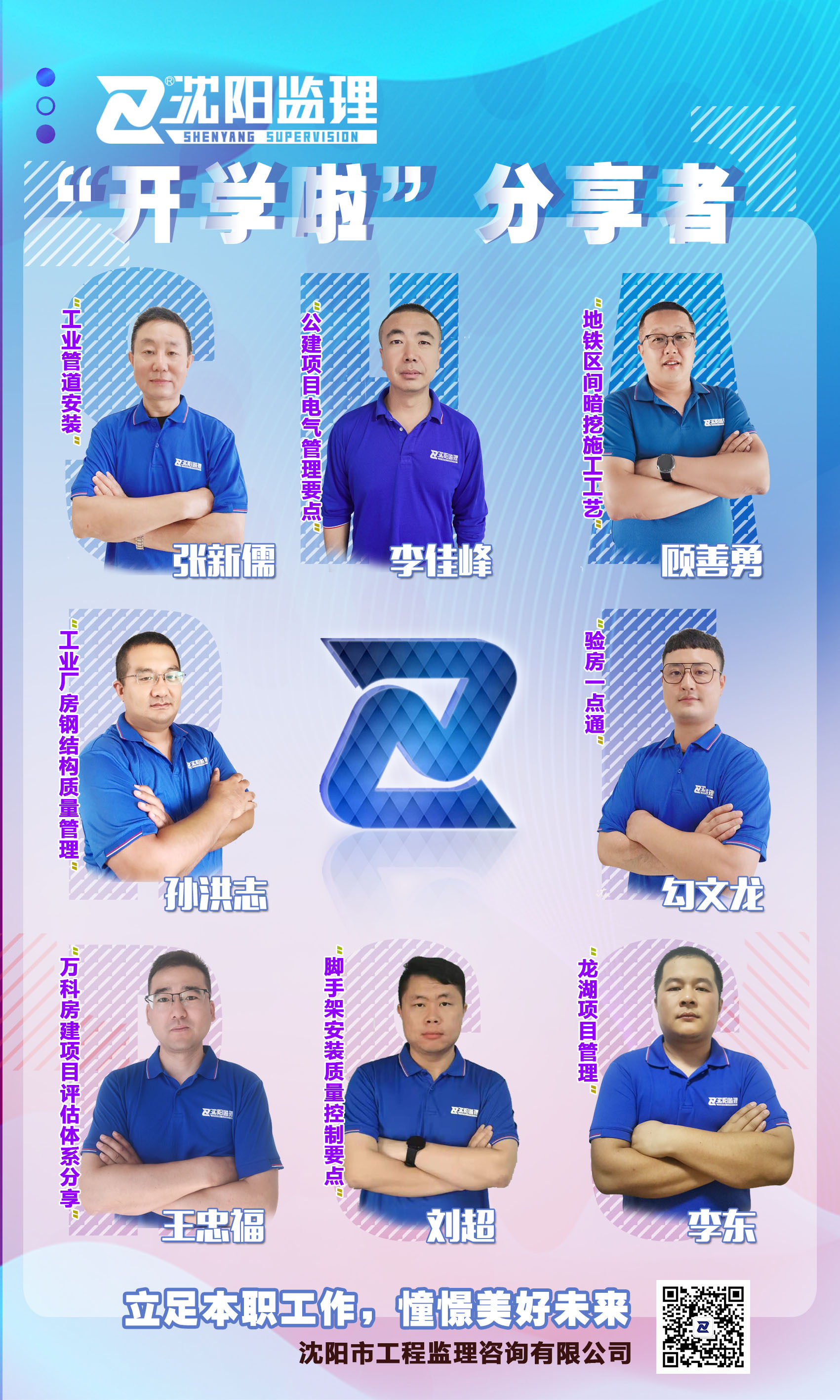 沈陽監(jiān)理開學(xué)啦,本期課程共邀請8位同事進行專業(yè)分享。