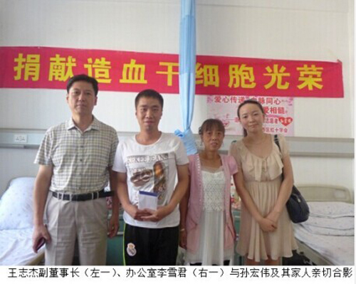 我公司南科大廈項目部孫宏偉作為“中國造血干細(xì)跑捐獻(xiàn)者”,與白血病患者配型成功,光榮成為沈陽市自2003年以來第二十位,本年度第一位配型成功的自愿者。8月6日至8月12日在孫宏偉住院采集造血干細(xì)跑期間,公司領(lǐng)導(dǎo)給予了極大的關(guān)懷和鼓勵,王志杰副董事長親切到醫(yī)院探望和慰問,高度贊揚孫宏偉用實際行動傳揚了“人道、博愛、奉獻(xiàn)”的紅十字精神,沈陽紅十字會領(lǐng)導(dǎo)親自到我公司為孫宏偉頒發(fā)錦旗,感謝孫宏偉對紅十字事業(yè)的愛心奉獻(xiàn)。